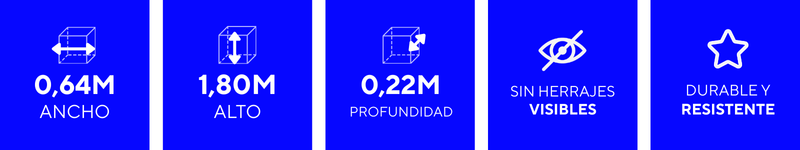 Medidas: 0.64m ancho x 1.80m alto x 0.22m profundidad