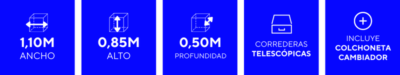Medidas cómoda: 1,10m ancho x 0,50m profundidad x 0,85m alto